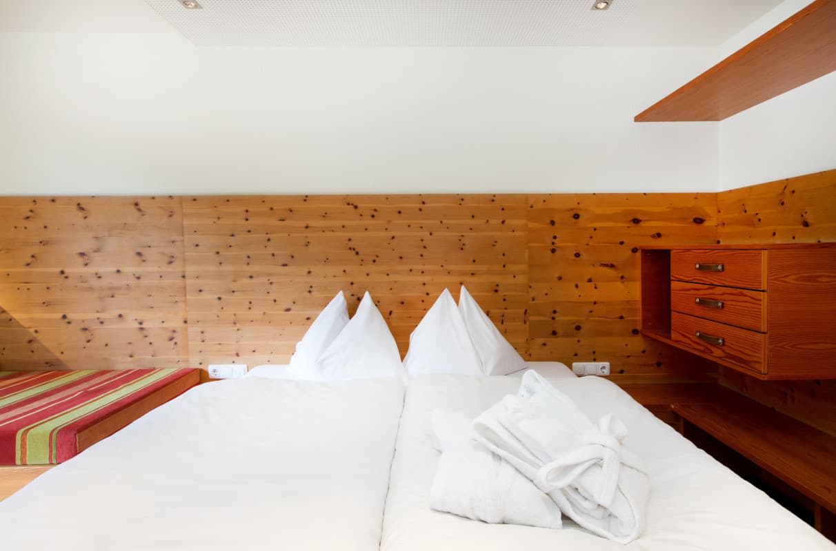 Das Familienzimmer Superior verfügt über 1 Schlaf-Wohn-Räum und bietet Euch einen geräumige Terrasse mit Aussicht nach Süden. Gemäß der fam Philosophie wurde bei der Gestaltung der Lagant-Zimmer auf die Bedürfnisse der Familiengäste und die Verwendung natürlicher Materialien geachtet. Die Zimmer sind mit Bad/Dusche, WC, Haarfön, Kosmetikspiegel, flauschigen Bademänteln, ausreichend Stauraum, Schreibtisch mit Hocker, Safe, modernem Flatscreen, WLAN und Telefon ausgestattet.