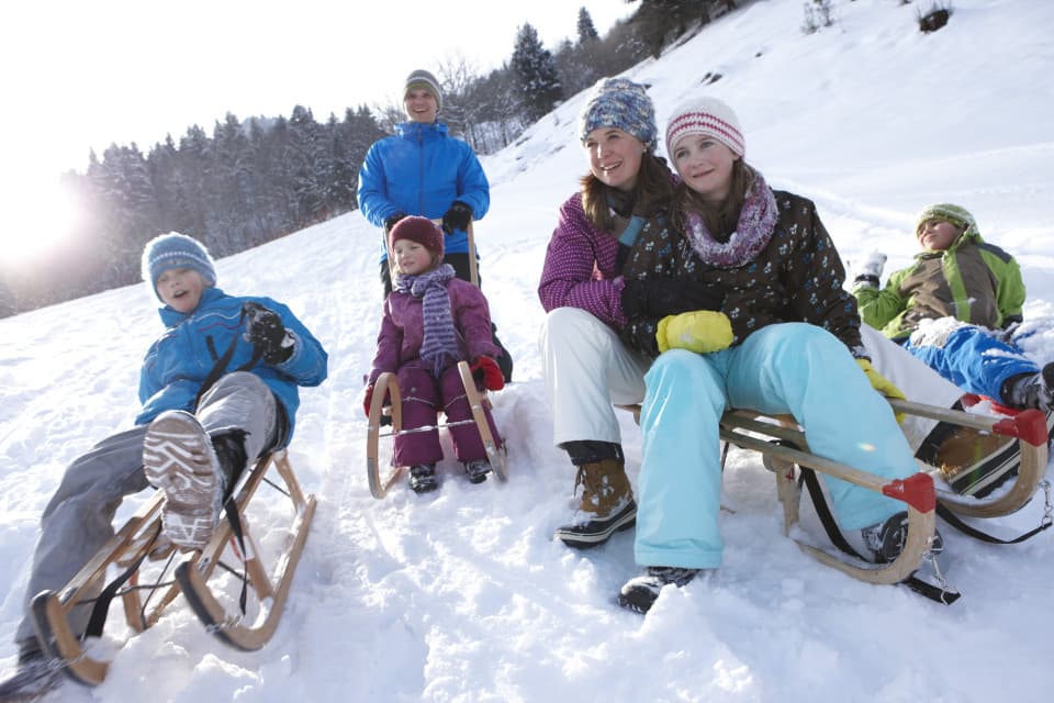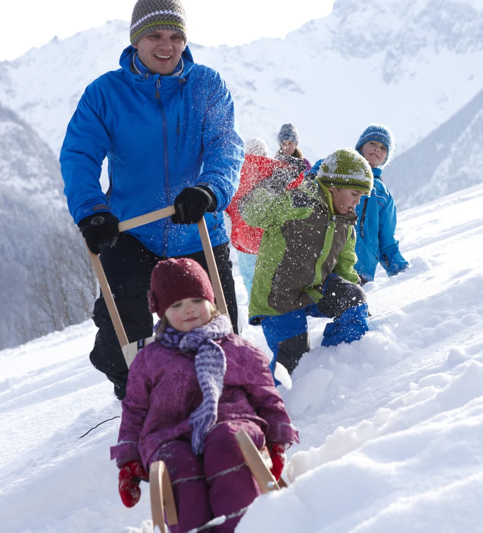 Perfect snow conditions. Tobogganing and skiing right outside the hotel door. Located in the middle of the winter hiking area. The family hotel Lagant is located right next to the valley station of the Dorfbahn Brand and the piste leads directly to the hotel.