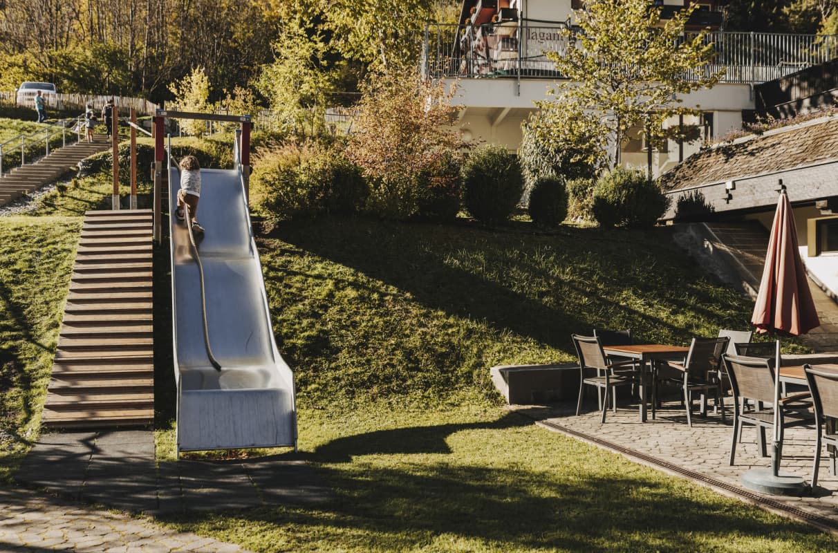 The sun terrace and sunbathing lawn at Hotel Lagant are a popular meeting place for families and those seeking relaxation. Whether summer or winter - find a cozy spot on the sun terrace, lean back and enjoy the breathtaking panorama of the imposing peaks of the Rätikon. Let yourself be pampered by the fine selection of drinks from our bar team.