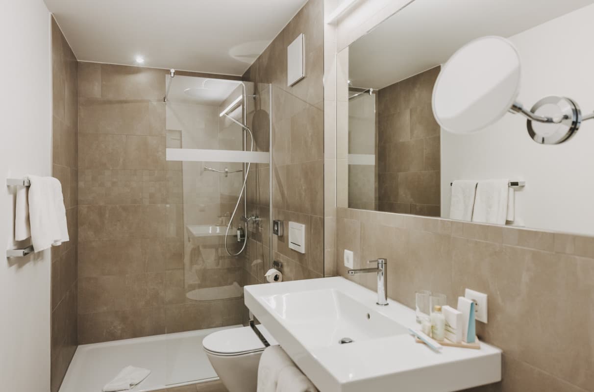 The Family Suite Deluxe is furnished with an oak parquet floor and offers you a view to the south and north. In line with the fam philosophy, the Lagant rooms were designed with the needs of family guests and the use of natural materials in mind. The rooms are equipped with bath/shower, WC, hairdryer, make-up mirror, fluffy bathrobes, ample storage space, desk with stool, safe, modern flatscreen TV, WLAN and telephone.