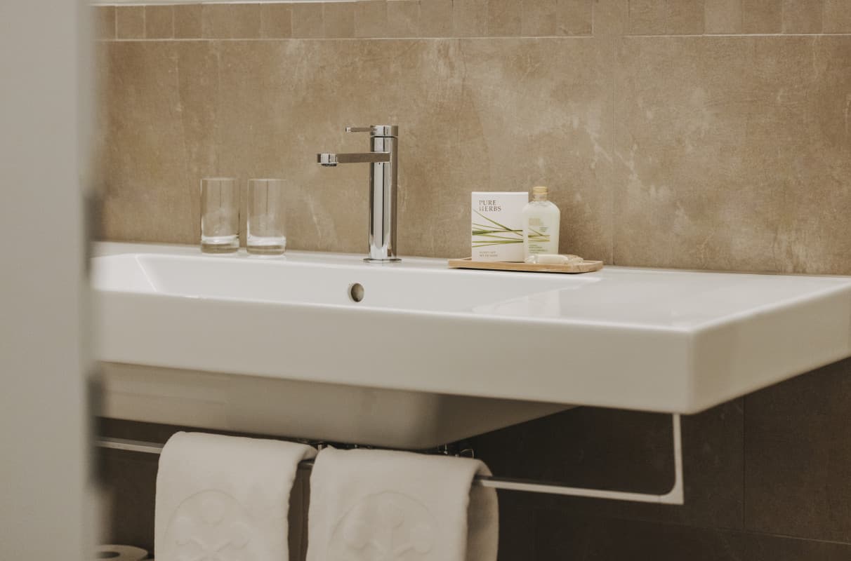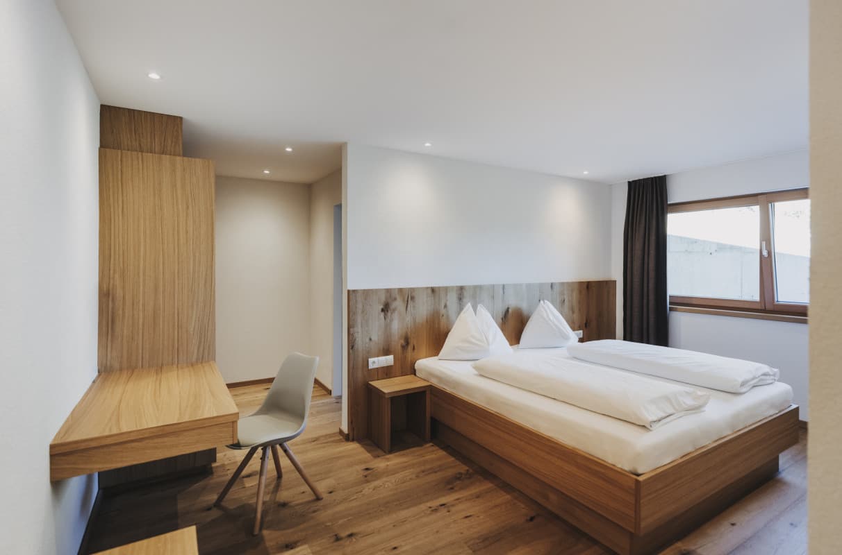 The Deluxe 2 family room has an oak parquet floor, 2 bedrooms with bunk beds for the children and a balcony or terrace with a view to the south. In line with the fam philosophy, the Lagant rooms have been designed with the needs of family guests and the use of natural materials in mind. The rooms are equipped with bath/shower, WC, hairdryer, make-up mirror, fluffy bathrobes, ample storage space, desk with stool, safe, modern flatscreen TV, WLAN and telephone.